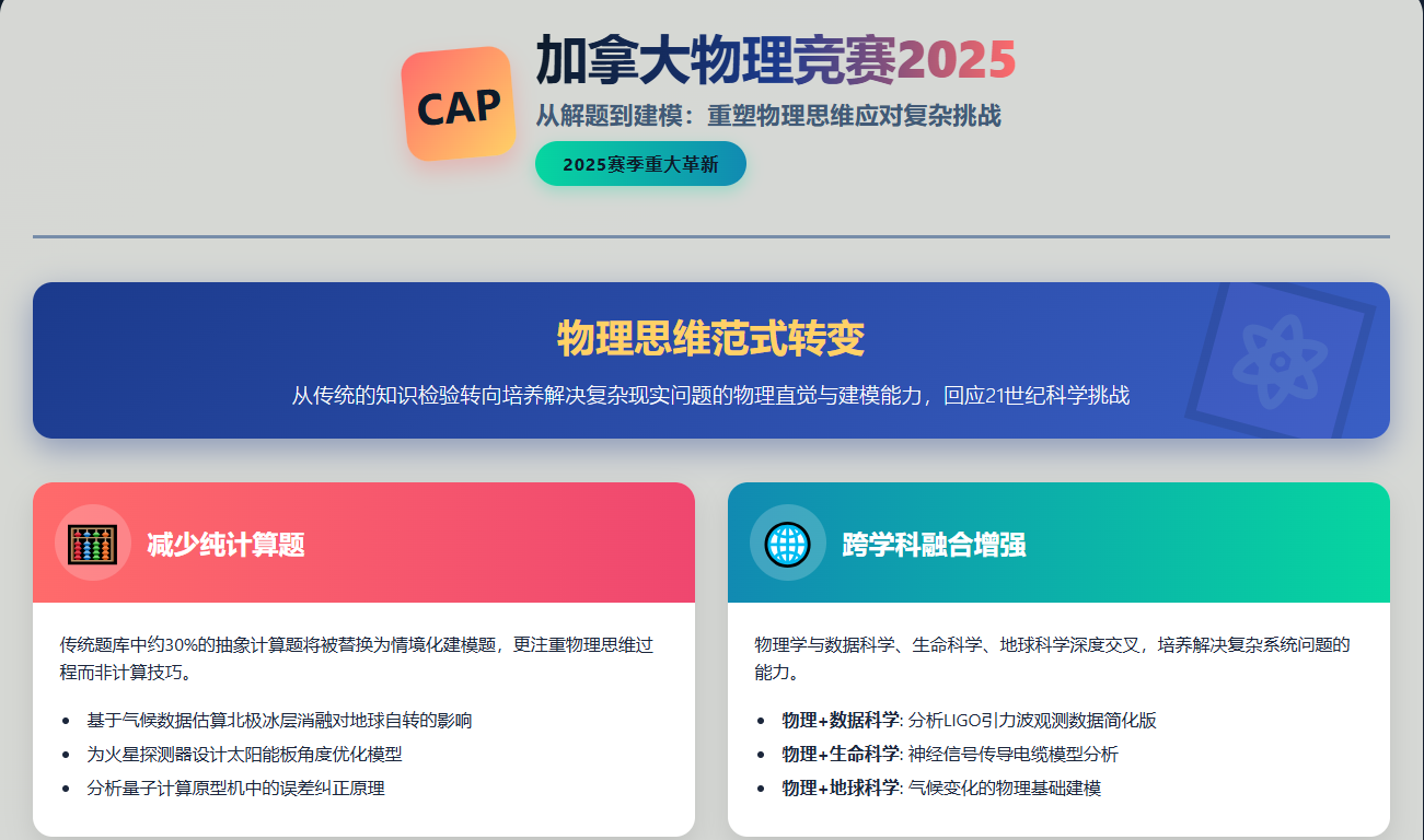 滑铁卢大学物理系的实验室里,一位教授指着最新的科研项目说:“我们寻找的学生,不仅要会解题,更要能像CAP竞赛要求的那样,用模型思考和创造。”
